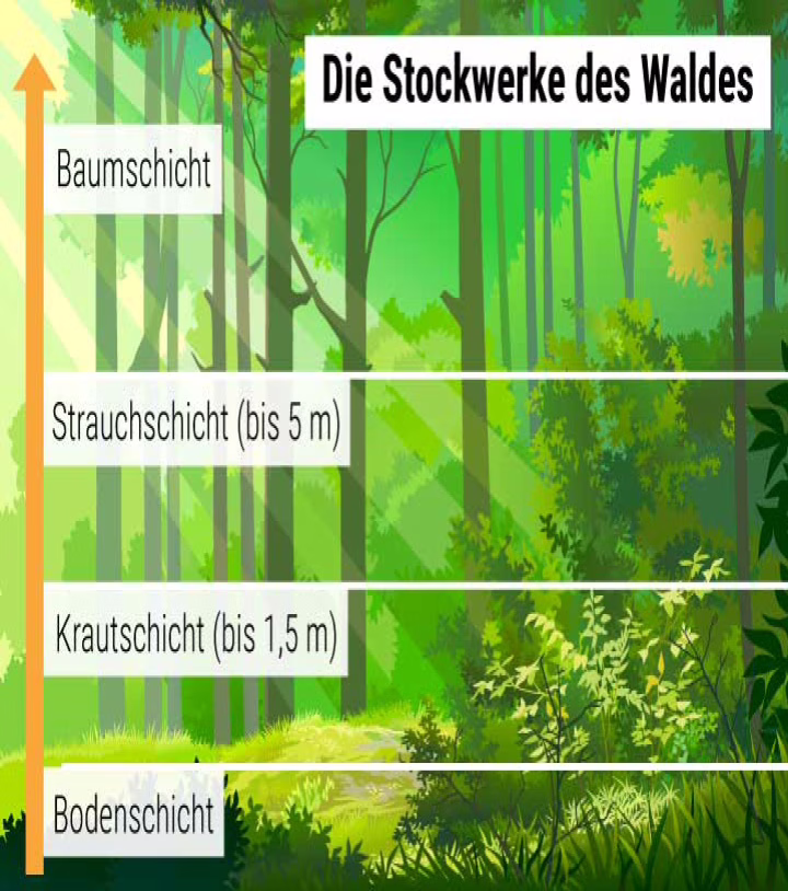 Erfahre, welche Tiere im Wald leben und welche Aufgaben der Wald hat! Der Wald bietet vielen Tieren Lebensraum. Sie finden dort Nahrung und gleichzeitig Schutz. Jedes Tier nimmt seinen eigenen Platz ein – weit oben in der Baumkrone, in Büschen und Sträuchern oder ganz unten am Boden. Wir schauen uns die verschieden Schichten an und bauen die Stockwerke des Waldes nach.